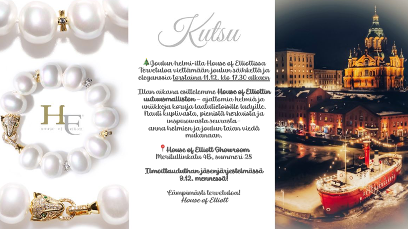 Illan aikana esittelemme House of Elliottin uutuusmalliston – ajattomia helmiä ja uniikkeja koruja laatutietoisille ladyille.