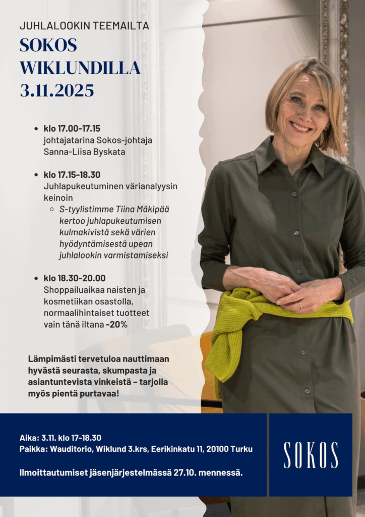 - S-tyylistimme Tiina Mäkipää kertoo juhlapukeutumisen kulmakivistä sekä värien hyödyntämisestä upean juhlalookin varmistamiseksi
